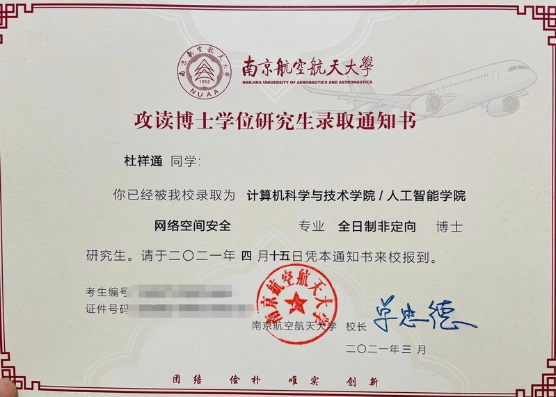 博士录取院校:南京航天航空大学