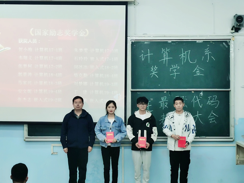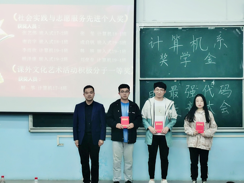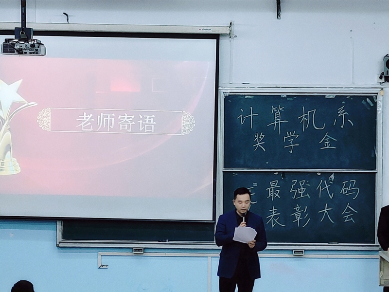 为表彰我系学生在上一学年竞赛、学习、工作等各方面取得的优异成绩,计算机系于2021年4月22日晚7点在一南隆重举办了19-20学年度优秀学生暨最强代码表彰大会,出席本次大会的人员有计算机系主任杨磊老师、学工办主任朱宁老师、17级辅导员杨书颖老师、团总支书记王静宇老师、学生党支部书记夏婷婷老师、20级辅导员毛睿老师。
