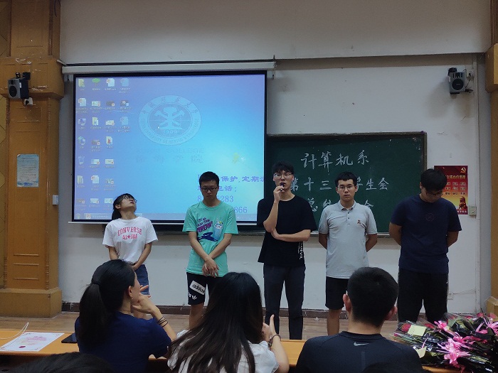 7月3日19点,中国矿业大学徐海学院计算机系于主西一教室召开了第十三届学生会总结大会,出席本次会议的有第十三届学生会主席席柯,团支部副书记陆慧海,学生会副主席高悦、叶紊、赵轩及全体学生会成员,并邀请学工办主任骆春铃老师,团学指导老师王静宇老师、学生会指导老师杨轩老师出席。