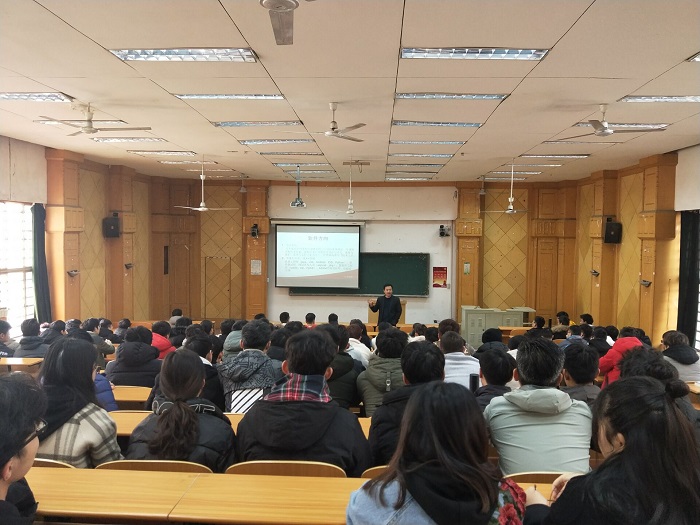 宣讲会伊始,杨磊老师就计算机发展趋势作了简要概述,他讲到:未来十年,计算机将是下一个“房地产”,要想在这个行业有更好的发展,是需要在专业领域进行深度学习的。我系计算机分为软件和网络两个专业方向。杨磊老师分别从培养目标、毕业生分类(技术+营销)、专业课程、就业方向、考研方向等五个方面讲述了软件与网络的不同之处。其中他讲到软件更加注重技术的学习(现在技术更新快),而网络则更加注重经验(从事时间越长,薪资越高)。其专业课程也不一样,软件方向专业课:web程序设计、数字媒体技术、算法分析与设计;网络方向专业课:网络安全技术、网络布线与集成、网络程序设计。在就业方面,软件主要是做软件开发、软件测试、数据管理、多媒体制作等;网络主要是做普通网络工程师、普通系统工程师、网络系统设计师、网络安全工程师、综合布线工程师等。而在考研方面,软件和网络大致相似,都可选择计算机软件与理论、计算机应用技术、计算机技术、软件工程等方面相关专业。