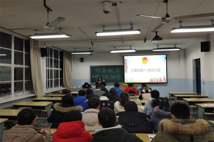 为进一步推动素质教育,让学生更好地参与第二课堂,计算机系于12月9日晚上7点,在主楼808教室召开了PU培训交流大会。出席本次会议的嘉宾有嵌入式16-2班团支部书记赵轩、副书记沙漠,组织部部长唐威,17、18级各班班长、团支书都参加了本次活动。