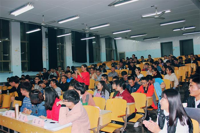 比赛开始,各班按抽签顺序依次上台展示PPT内容,并赋予精彩的讲解,各班的班徽设计都拥有着独特、深厚的内涵,代表着各自班级的精神风貌。他们手绘出来的班旗,简洁而不失端庄大气。班服的设计不仅在气度上给人震撼,线条的搭配、色彩着调都让人眼前一亮。观众、主席团和评委纷纷为各班级的创意点赞鼓掌。本次活动各班带来了精彩的表演:炫酷的舞蹈、诙谐的三句半、恢宏的大合唱,还有席柯主席动人的清唱,17级十佳歌手彭易凡美妙悦耳的《小幸运》。