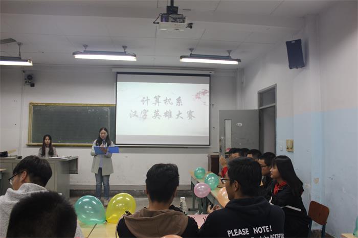 为了展现汉字的独特魅力,加深同学们对汉字的认知程度,计算机系学生会办公室于2018年10月28日晚7点,在主楼612教室举办了一场精彩的汉字英雄大赛。参与此次大赛的嘉宾有计算机系学生会主席席柯,副主席赵轩、叶紊,办公室部长袁嘉良、宋山山。
