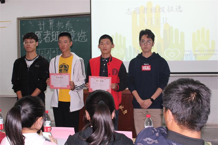 此次评选活动共六个班级参加,各位班级代表按照事先抽签顺序依次上台。每位代表借助PPT详细讲解了班级近况,并对评委提出的问题进行了现场答辩。在经过各班精彩的PPT展示和激烈的答辩后,各班代表分别发表了对于青年志愿者事业的看法,展示了本班成员参与志愿者工作的成果和对未来班级志愿者活动的规划以及憧憬。最终,在评委会公平且慎重的决定下,计算机18-4班与嵌入式18-2班成功当选志愿者班级。