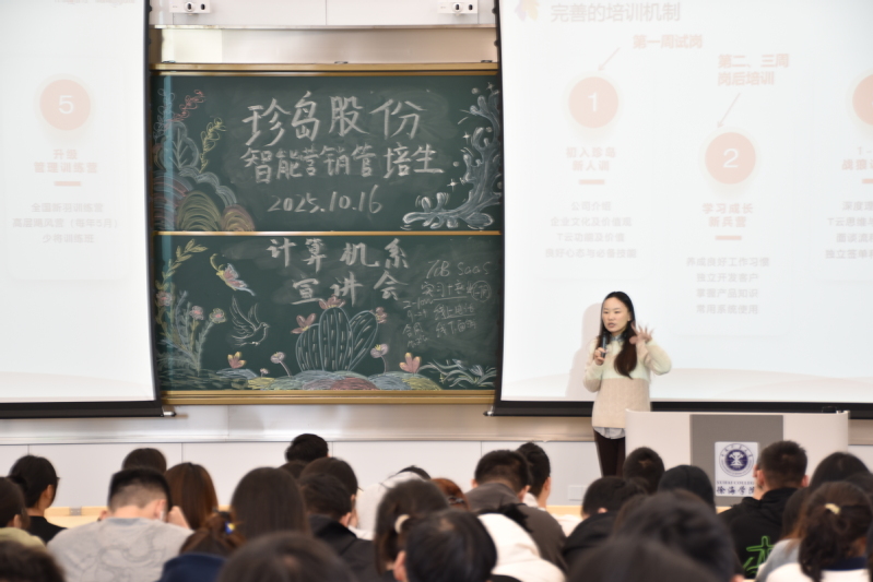 为实现企业与与26届毕业生双向匹配,计算机系于10月16日下午两点在力行楼B100举办了珍岛集团校园招聘宣讲会,主讲人刘茗璇为在场学生带来了一场关于数智化领域职业发展的精彩分享。