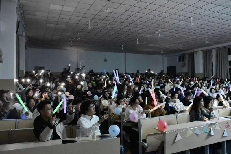 比赛现场星光熠熠,高潮迭起。十三组选手轮番登场,以多元曲风演绎青春风采,如《雨爱》般深情婉转的抒情曲、《大天蓬》式豪情万丈的国风歌、《寂寞的季节》藏着时光感的温暖流行歌等,各展所长的表演赢得全场阵阵喝彩。中场互动环节将现场气氛推向高潮:暖场嘉宾张凤婕与赵子翔共同演唱《身骑白马》,默契演绎点燃全场;“歌词接龙”环节中,蒋硕、张珂两位老师率先开唱,歌声刚落,台下便手臂如林,同学们争相接唱、反应迅速;“听歌识曲”环节更是火爆异常,旋律一响,现场瞬间举起一片手臂,答对者喜提小礼品,欢声笑语充满了整个现场。在一系列精彩纷呈的表演与热烈互动后,比赛逐渐接近尾声,张靖祯登台献唱《亲爱的你啊》,清甜灵动的歌声瞬间点亮现场;随后蒋硕温情开嗓,一曲《像风一样》伴着温柔嗓音与舒缓旋律缓缓流淌,为赛事画上治愈又暖心的句号。