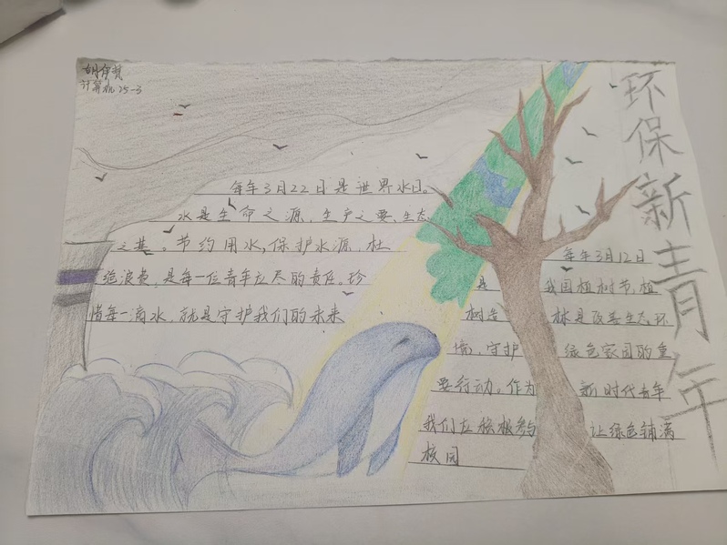 为响应生态文明建设号召,践行“奉献、友爱、互助、进步”的志愿服务精神,3月9日,计算机系青协开展“环保新青年,责任我先行”环保手抄报活动。活动以创意创作为载体,将志愿精神与绿色发展理念融入手抄报设计,引导同学们以画笔绘生态、用行动护校园,传递节水节电、低碳生活等环保知识。