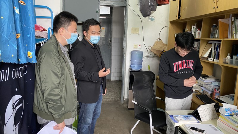 在走访毕业班宿舍的过程中,老师们了解各位同学的就业情况、研究生复试的准备情况及毕业设计的工作进度,并分类进行了指导。杨主任特别指出了防疫期间求职多以线上形式为主,各位毕业生要多准备、多主动,从而借助网络平台凸显自己的优势。