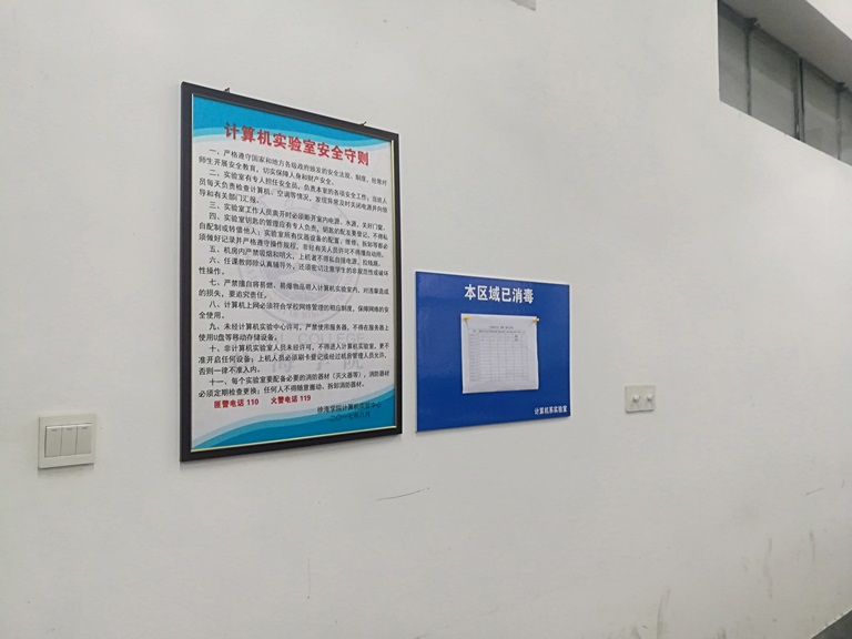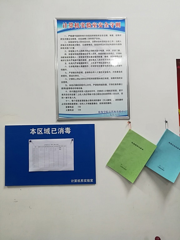 此次疫情期间的安全卫生检查,计算机实验室落实了各级领导提出的卫生、消毒、安全防火、防风、防电等布置,加强了疫情期间的安全管理。针对疫情期间所开放的实验室机房采取全面消毒、专人管理员值班签到、学生使用机房签到等工作,确保师生的机房安全工作。