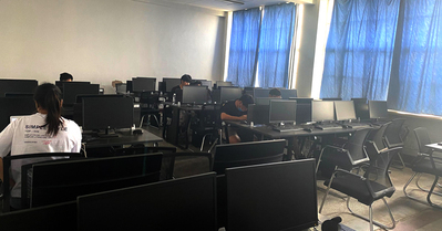 在疫情防控的特殊时期,计算机系于6月11日9:00率先采取线上答辩的形式,为2020届毕业生进行了一场特殊的作品演示。前期,实验室老师在系主任的安排下,紧锣密鼓加班加点,将机房设备调试好,并进行了细致入微的消毒工作,为机房顺利答辩奠定了坚实的基础。教学办公室人员按照教务处总体答辩要求,认真完成每一项工作,及时督促学生上交资料,做好师生联系人,安排答辩人员,确保答辩流程合理合规、安全可靠。