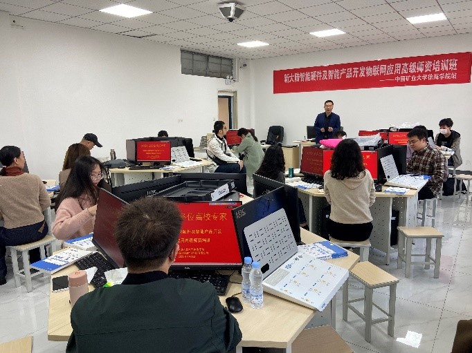 4月1日上午,中国矿业大学徐海学院和北京新大陆时代科技有限公司联合组织的“产教融合物联网高级应用师资培训班”在计算机系物联网专业实验室顺利开班。中国矿业大学徐海学院党委委员、院工会主席、计算机系主任杨磊,新大陆教育集团江苏高教负责人孙虎,物联网专业负责人助理周海燕及物联网专业骨干教师,来自江苏师范大学、江苏科技大学、徐州工程学院、南通理学院工、泰州学院物联网相关专业的骨干教师出席了开班仪式。